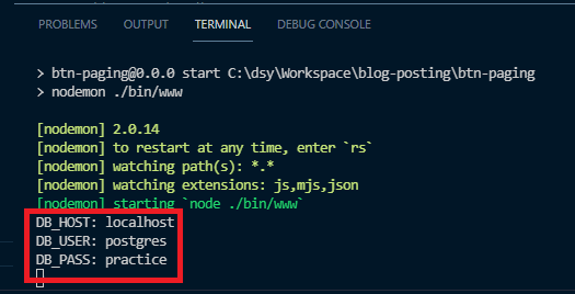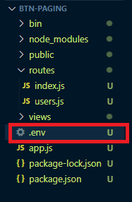 저같은 경우는 btn-paging이라는 폴더를 사용했고, .env는 바로 그 아래에 작성했습니다. (btn-paging>.env)
